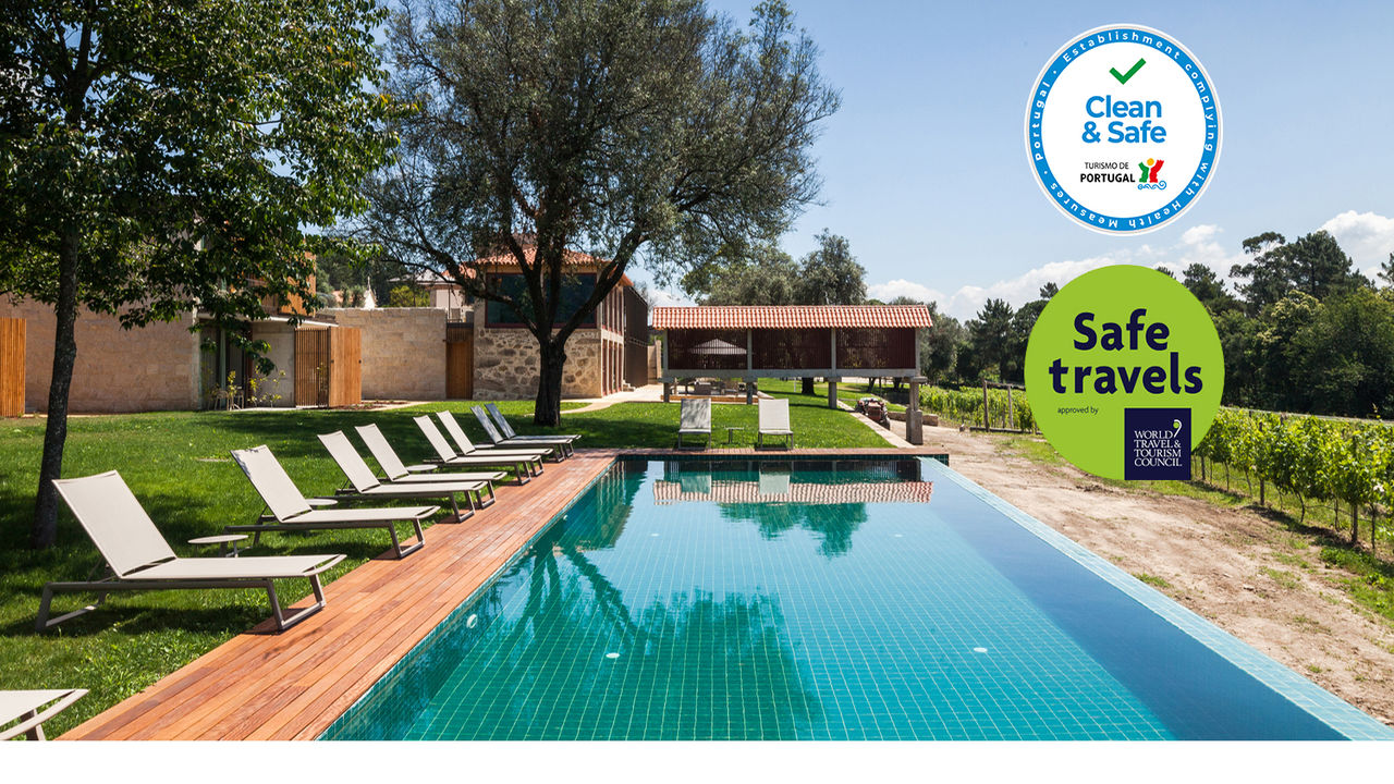 Located in Cervães, Vila Verde, the hotel is located on a property surrounded by vineyards and leafy forest. With only 24 rooms and a capacity for 50 guests, all rooms and suites (except the Tower Suite), have direct access to the outside. The lack of corridors allows for a free movement of people. The gardens, the vineyard and the forest allow long walks, where the sounds of nature will be your background music.